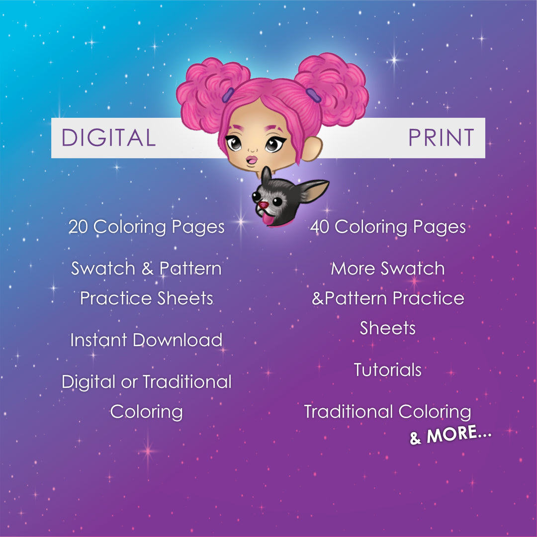 - Digital Coloring Pages. Enjoy unlimited coloring anytime the mood strikes with a pdf coloring book that can be colored with virtually any digital art program or printing at home, school, or favorite printing business.